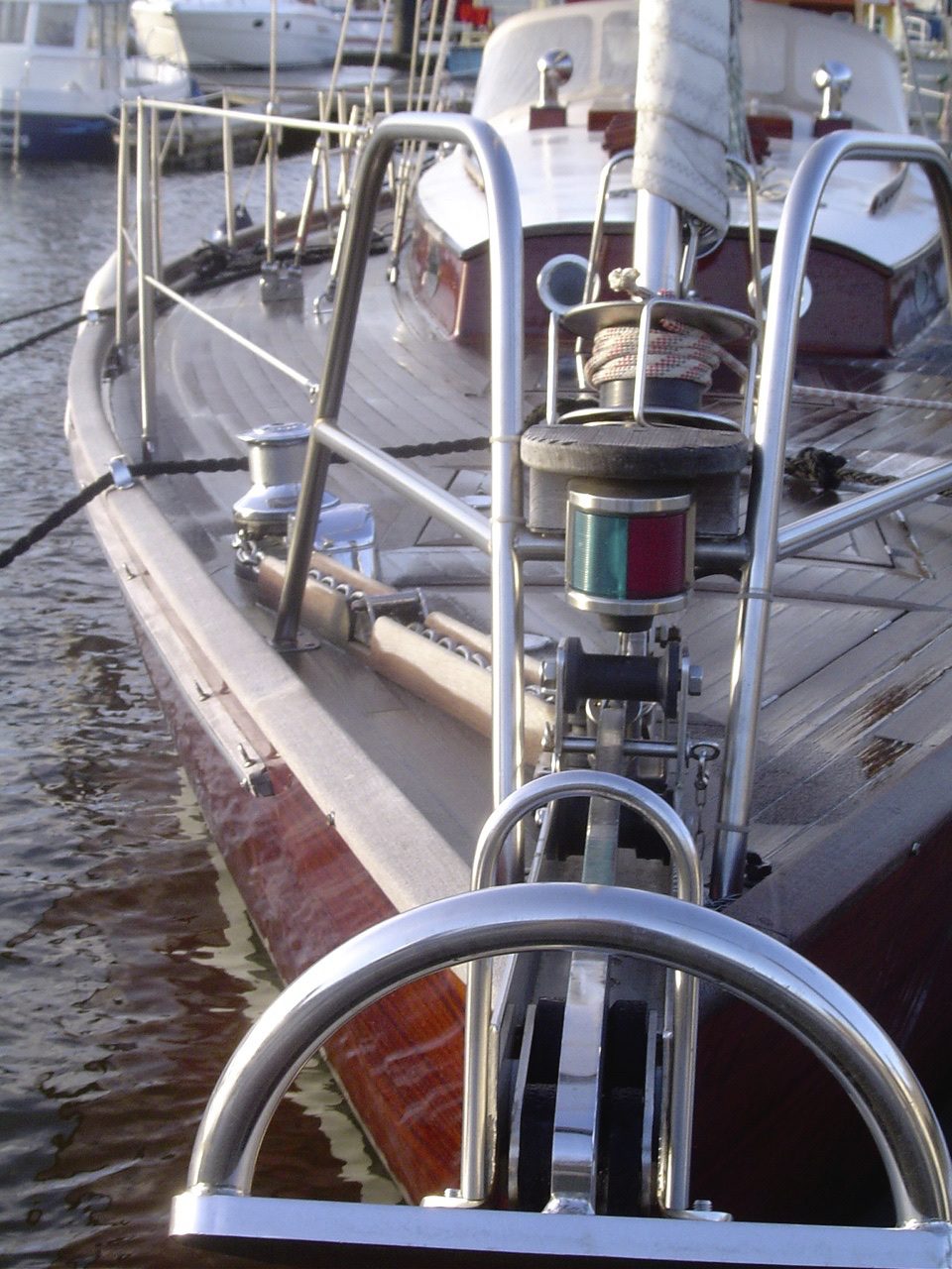 Da am Vordeck keine Haltegriffe für die arbeitende Crew mehr erreichbar sind, muss die Seereling stabil und hoch ausgeführt sein, um Sicherheit zu bieten. An Bord von LA BELLE EPOQUE haben wir eine 90cm hohe Seereling aus Edelstahlrohr und mit zusätzlichem Stahlseil in halber Höhe verschweißt und sind damit mehr als zufrieden. Natürlich liegt der Nachteil in einer hohen Reling darin, dass sehr tief geschnittene Segel mit der Reling in Konflikt kommen. Doch für uns ist dieser Nachteil auf einer Fahrtenyacht nicht entscheidend, da wir ohnehin hoch geschnittene Segel aufgrund der besseren Sicht und des verminderten Seeschlags in die Segel bevorzugen und die Sicherheit der Crew am Vordeck wichtiger ist.