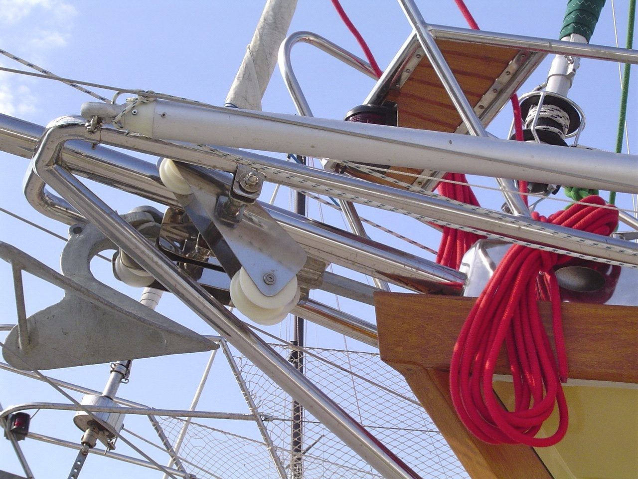 Obwohl der Bugsprit sehr praktisch zum Stauen des Ankers ist, hat er doch gerade beim Ankern einen Nachteil: Segelt die Yacht vor dem Anker, rutscht die Ankerkette immer wieder am Wasserstag entlang, eine lärmende und materialbelastende Angelegenheit. Benützen wir eine Ankertrosse, ist sie laufend in Gefahr, am Wasserstag zu schamfilen.