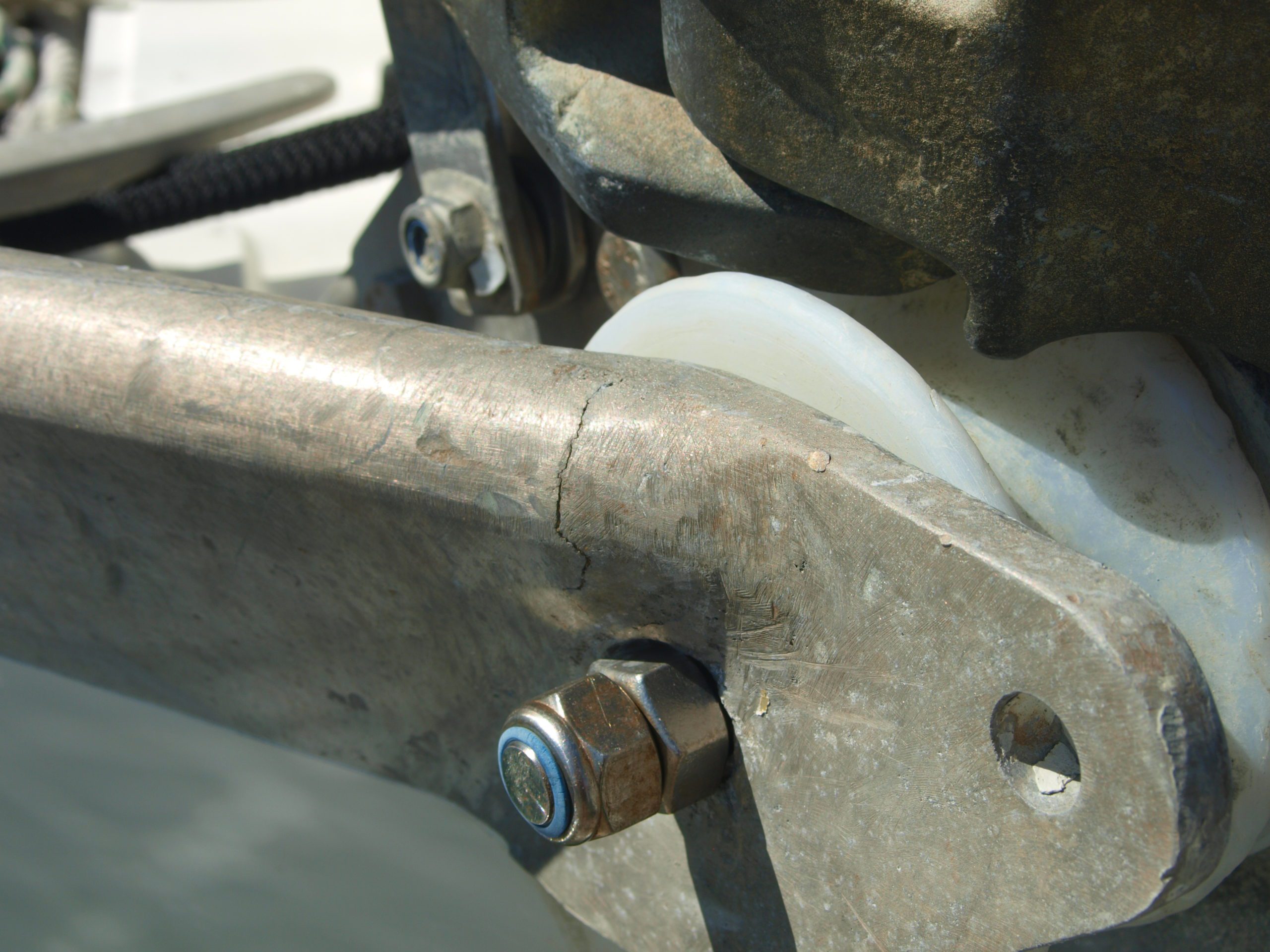 Dieser Riss in der Ankerrolle aus Aluminium zeigt, welche Belastungen auf das Ankergeschirr der Yacht kommen können.