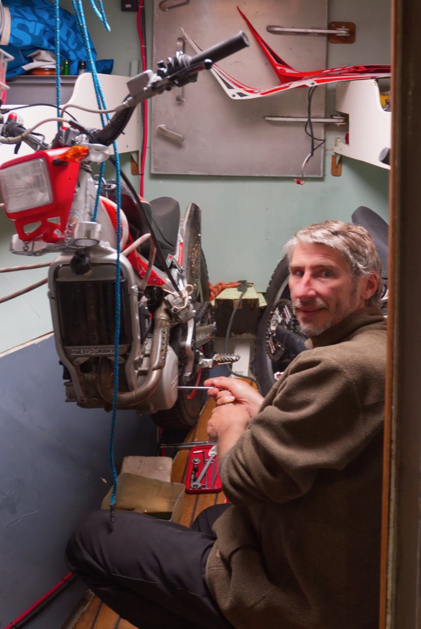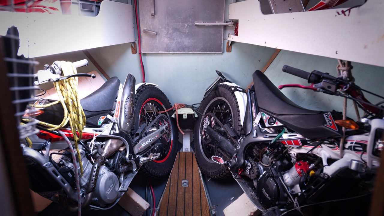Motorräder in der Bugkabine an Bord unserer Blauwasseryacht